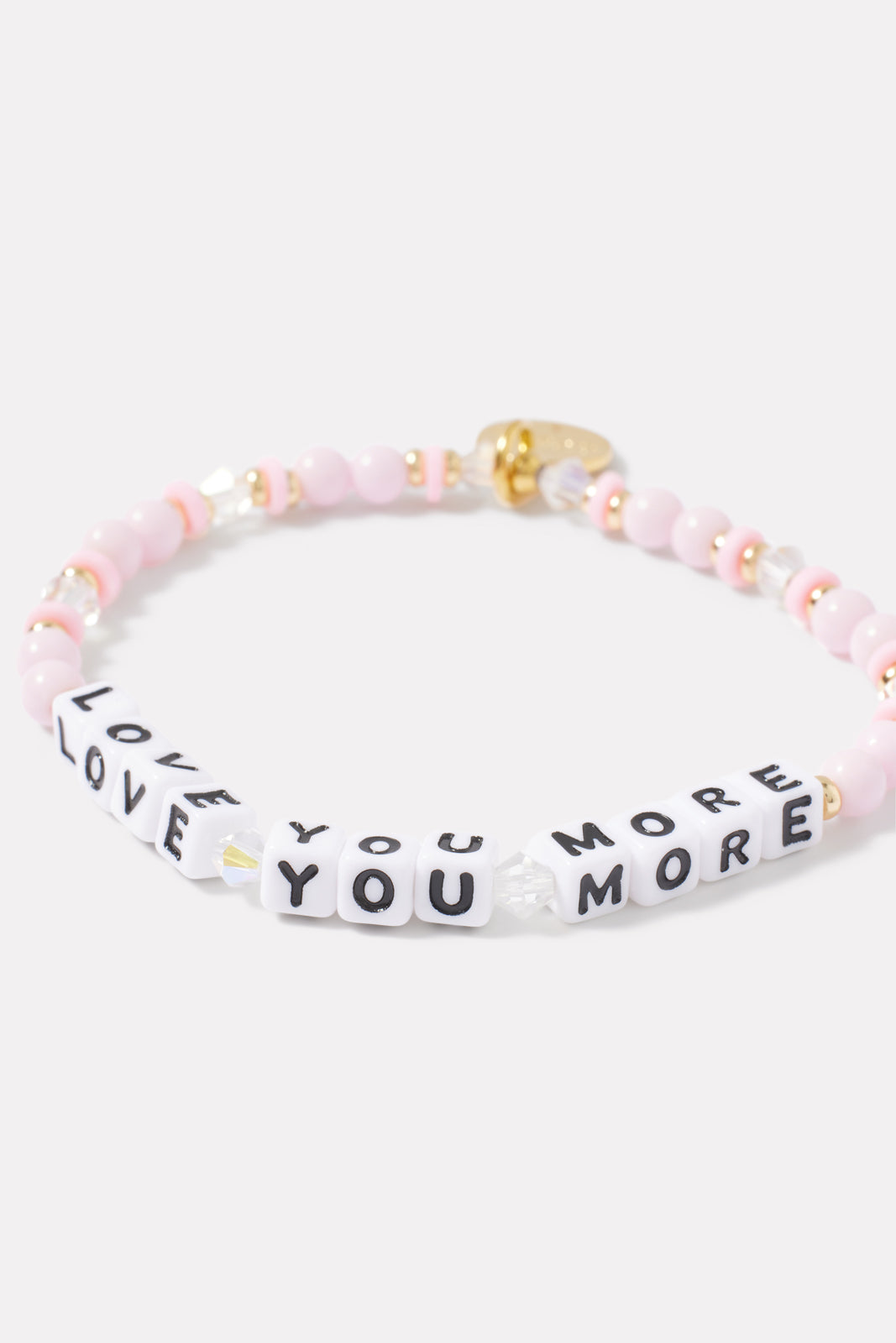 Show some love with this beaded bracelet by Little Words Project, handcrafted with "Love You More" lettering, pink beads, and stretch elastic for easy on-and-off. Alone or stacked, it makes the perfect gift for yourself or a loved one.