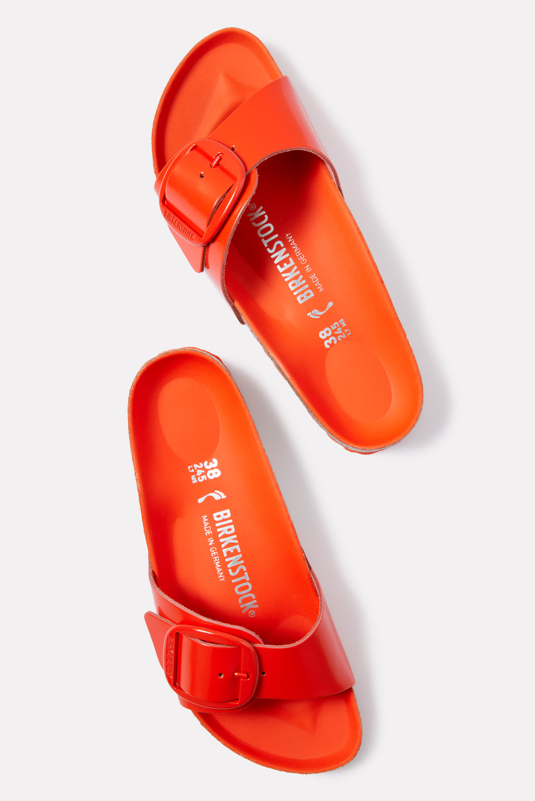 Style and comfort define these versatile Birkenstock sandals, featuring a single strap design with a buckle accent. You’ll be wearing them on repeat thanks to the contoured cork footbed, while the vibrant patent leather will add the perfect pop to any warm-weather look.