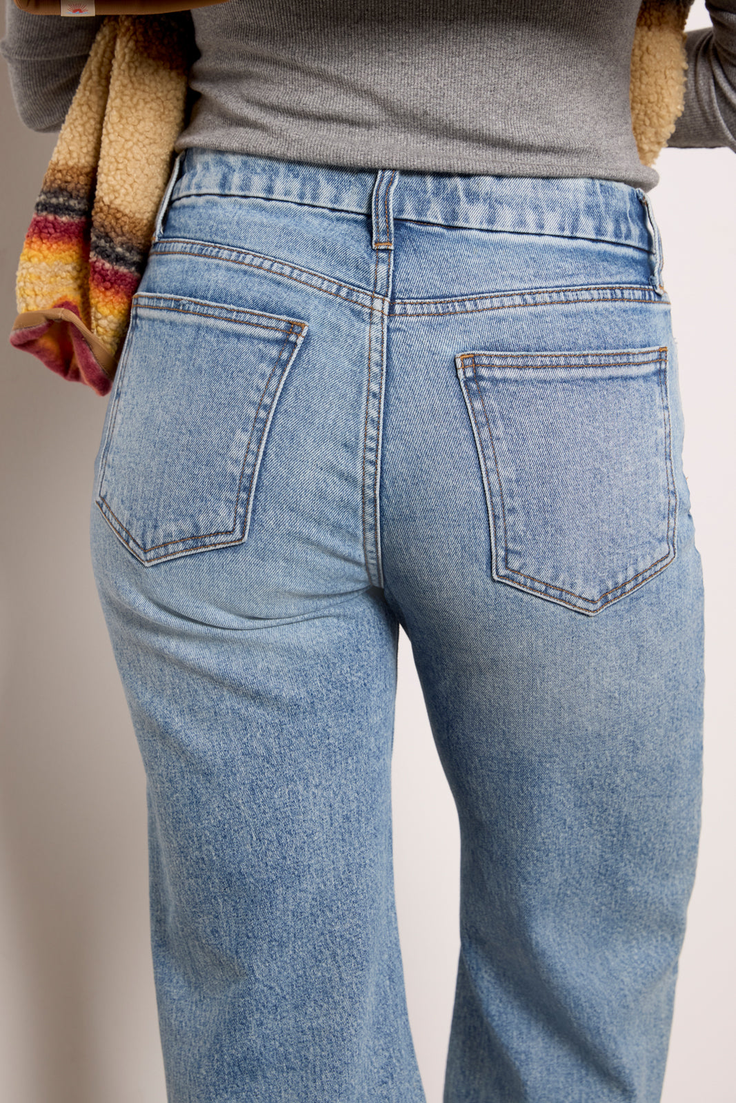 Round out your denim collection with the must-have Meg jean by Kut From The Kloth. Finished in a light blue wash, this wide-leg silhouette features a mid-rise fit, ankle-length raw hems, and curved side seams for added detail. The soft comfort-stretch denim will move with you from day to night.