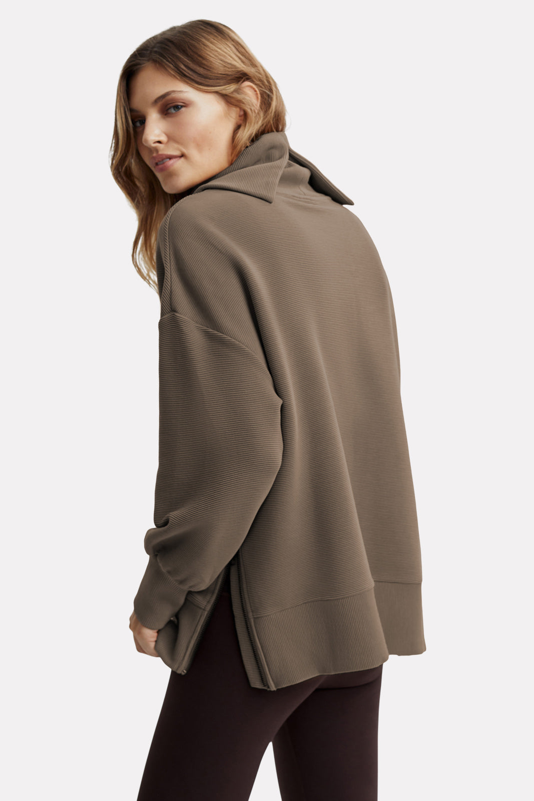 Crafted in soft rib knit fabric, this Varley sweatshirt is an easy, elevated staple. This weekend-ready pullover features a relaxed fit, cowl neckline, and zipper details at the sides.