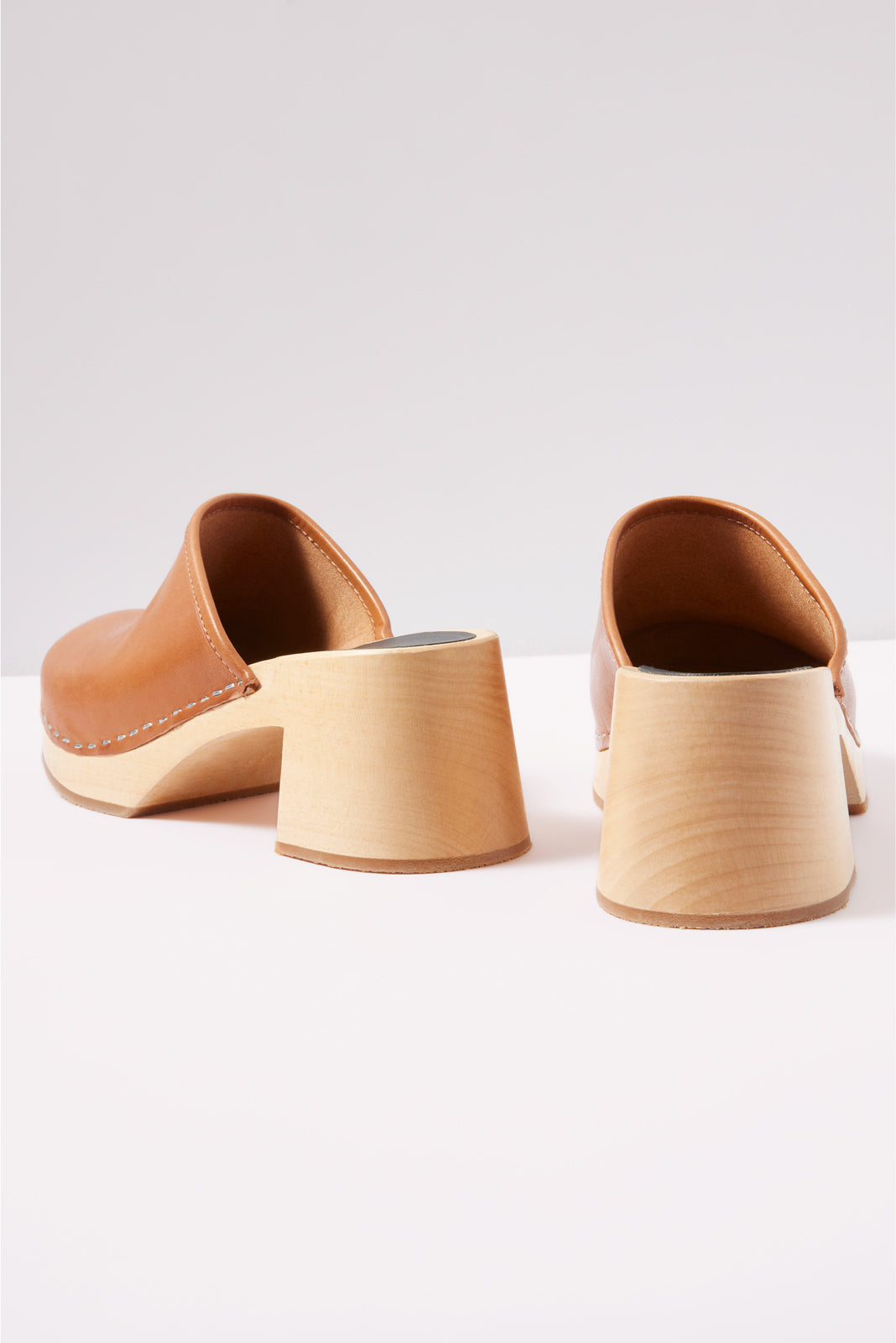 Give any look a chic, retro-inspired twist with these stylish clogs by Swedish Hasbeens. The Nature Clog is crafted with vegetable-tanned leather and features a wooden platform heel and round toe. Slip them on with a dress or wide leg jeans.