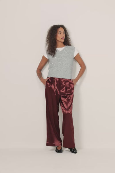 Topped with sparkling rhinestones, this chic sweater vest by LNA features a sleeveless, cropped silhouette with a ribbed hem and diamond knit pattern—perfect for adding a hint of shimmer to your wardrobe.