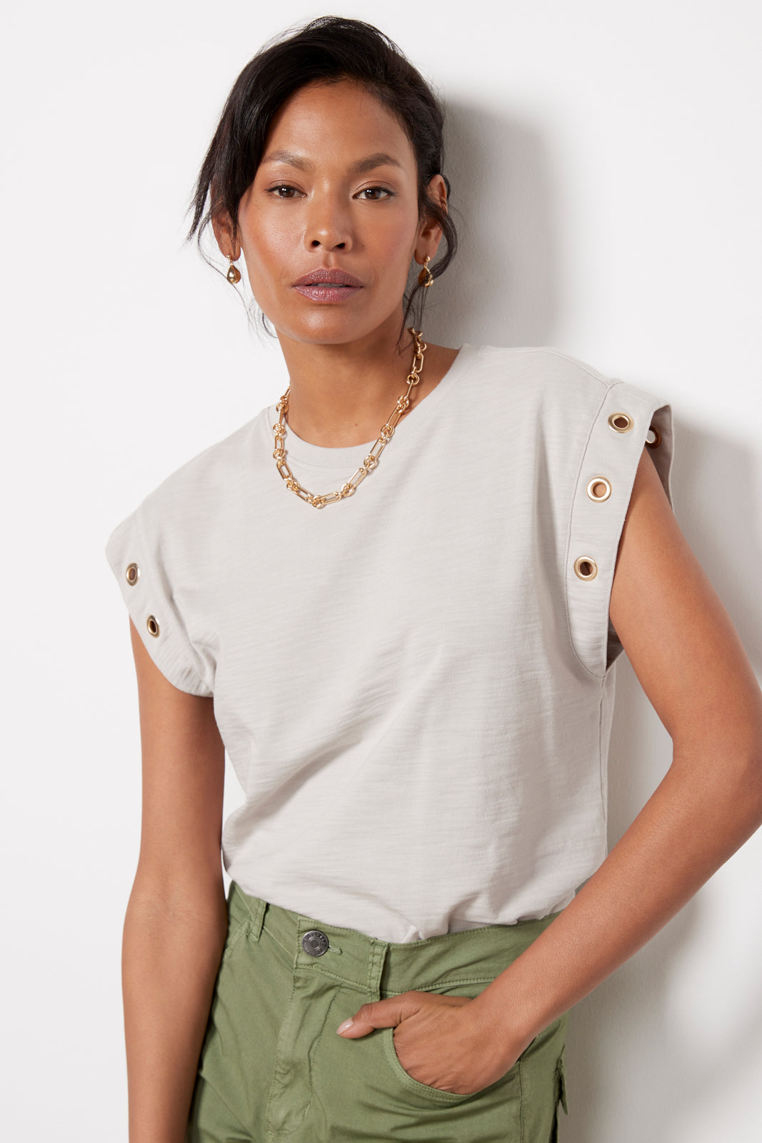 A classic muscle tank with an unexpected edge, this Nation LTD tee is crafted in comfortable cotton and features a relaxed fit, grommets along the sleeves, and a crew neckline.