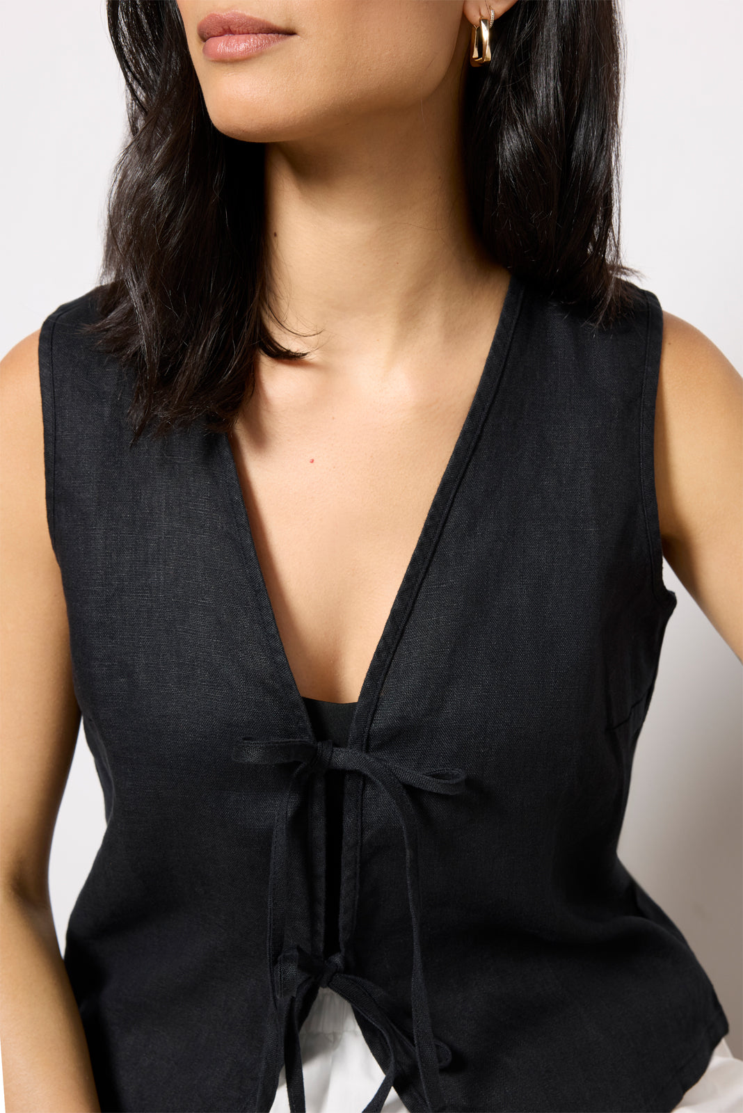 Crafted in luxe linen, the Oregon Top by Rails features a vest silhouette with tie front closures and a relaxed fit.