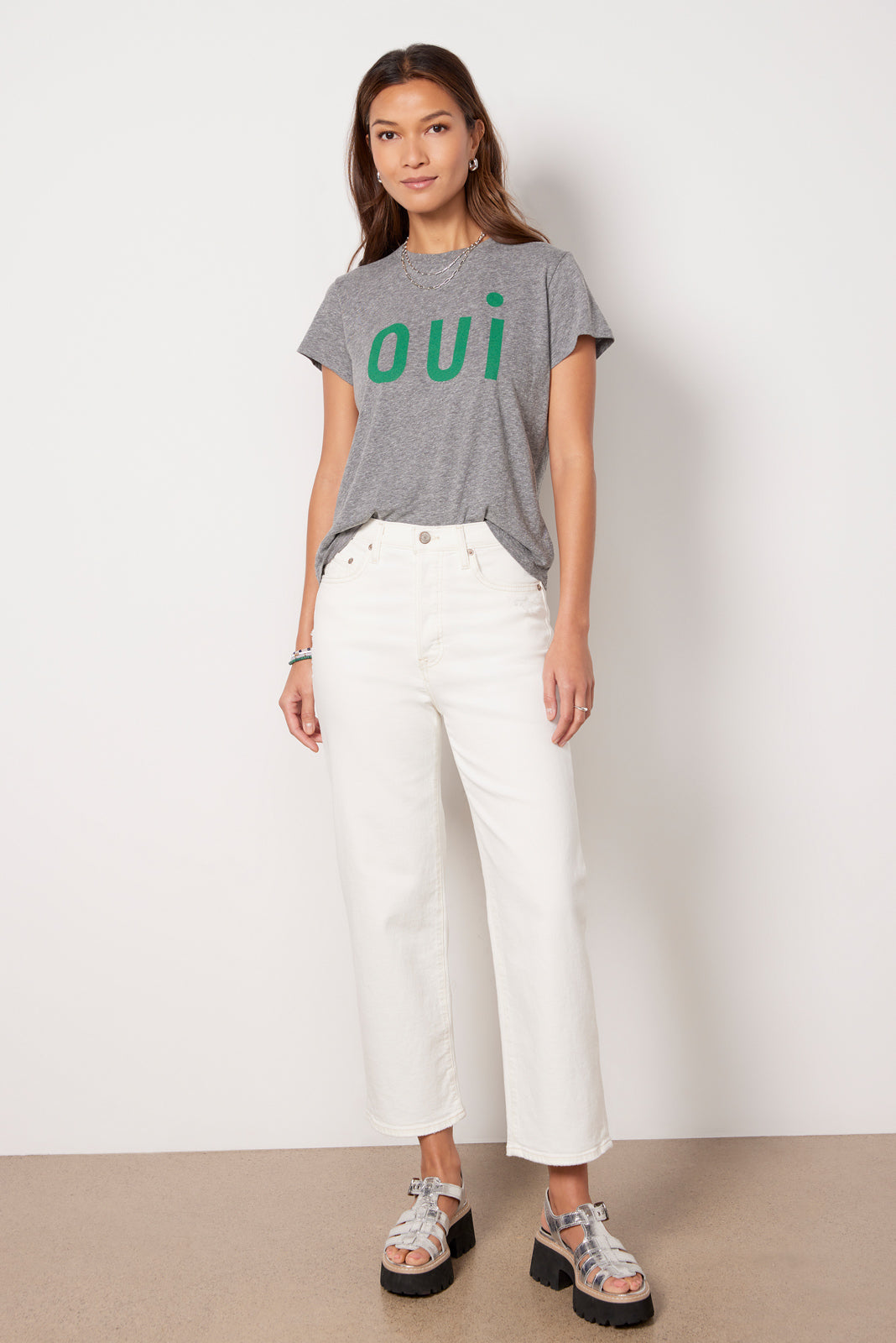 Top off your graphic tee collection with the Oui Classic Tee by Clare V, featuring soft cotton fabric, short sleeves, and a relaxed, cropped fit. Wear tucked into a skirt, jeans, or your favorite cargo pants.