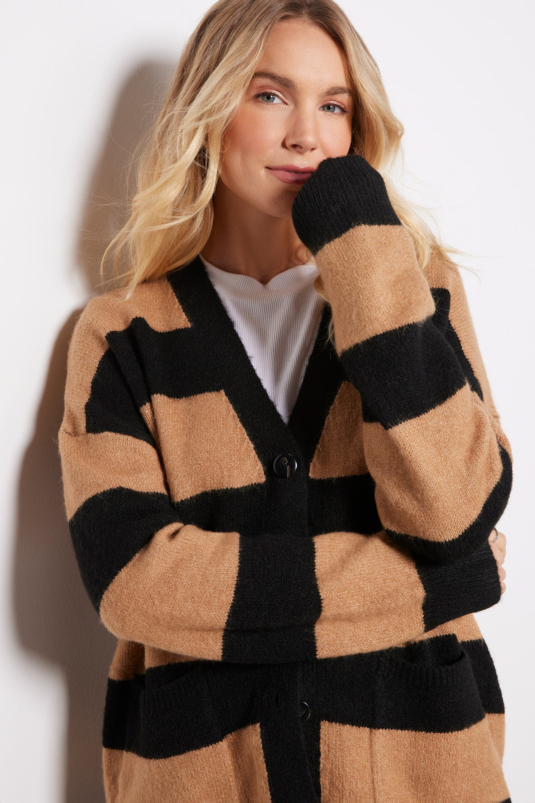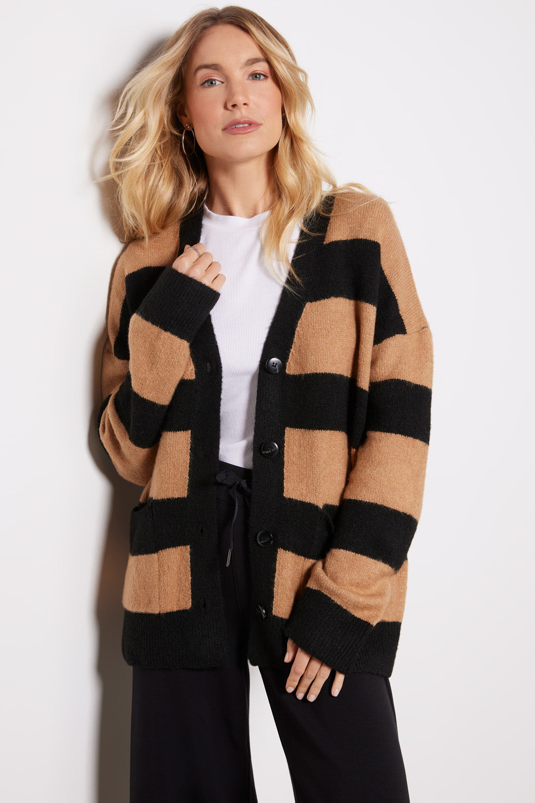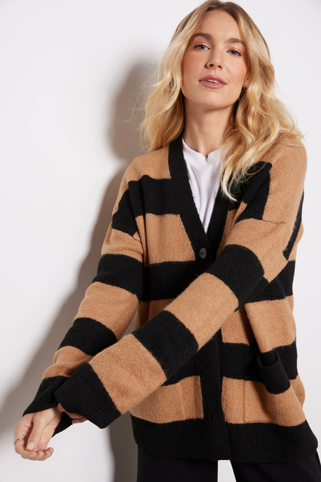 This John + Jenn cardigan will be your go-to sweater of the season. Finished in a fall-forward striped design, this chic sweater features a front button closure, dropped shoulders, and oversized fit that's perfect for layering. Dress it up with trousers and mules, or pair with comfy wide leg pants for an elevated laidback look.