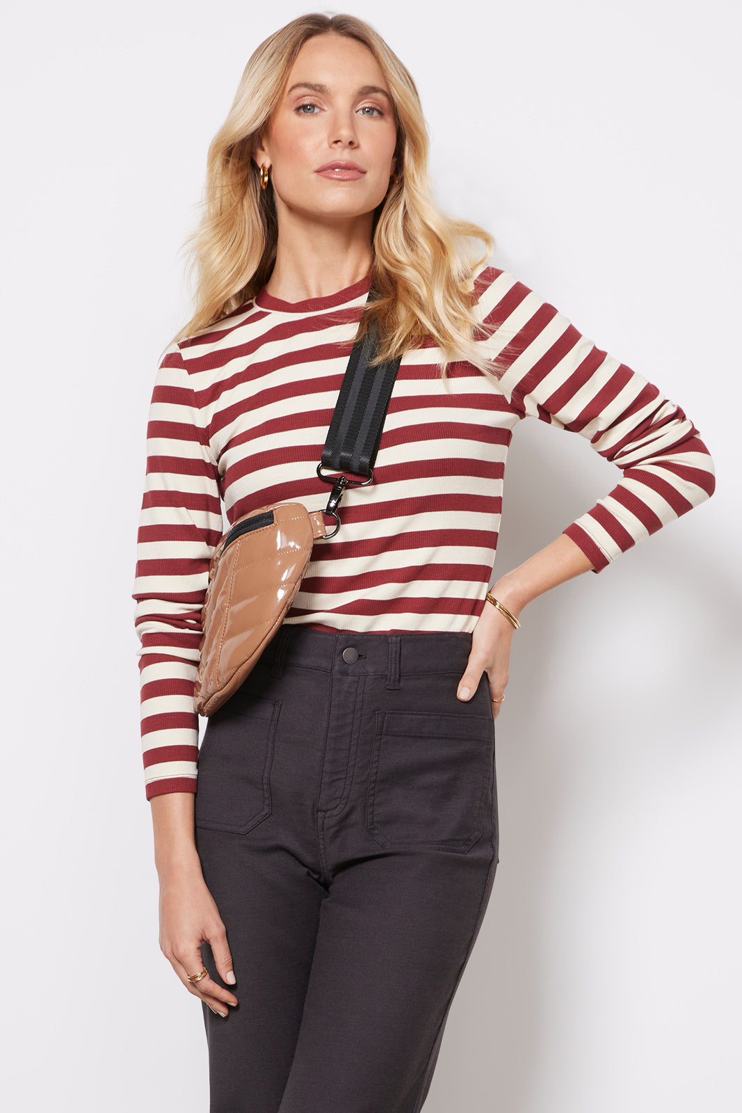 A go-to wardrobe essential, this versatile long sleeve top by LNA features a fitted crewneck silhouette in soft rib knit fabric—perfect for wearing alone or layered.