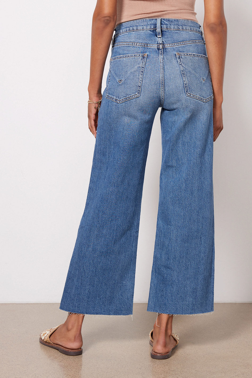 This versatile wide leg jean by Hudson is crafted in soft stretch denim and features a high-rise fit, button fly closure, and ankle-length raw hems.