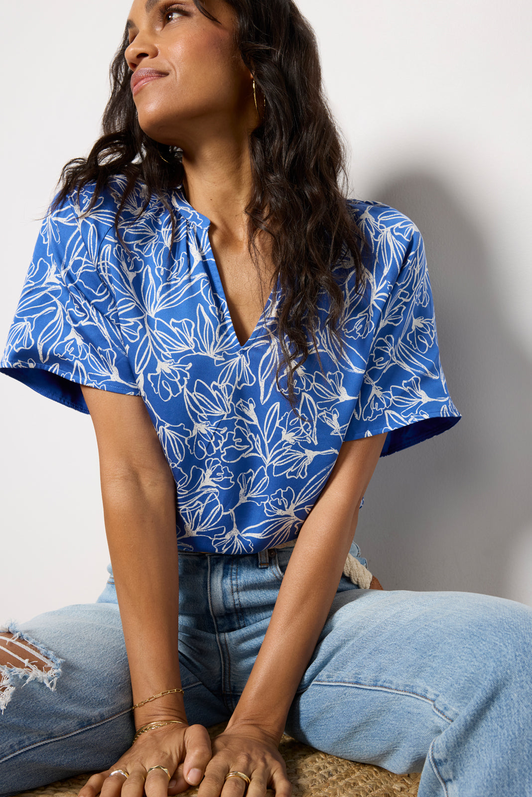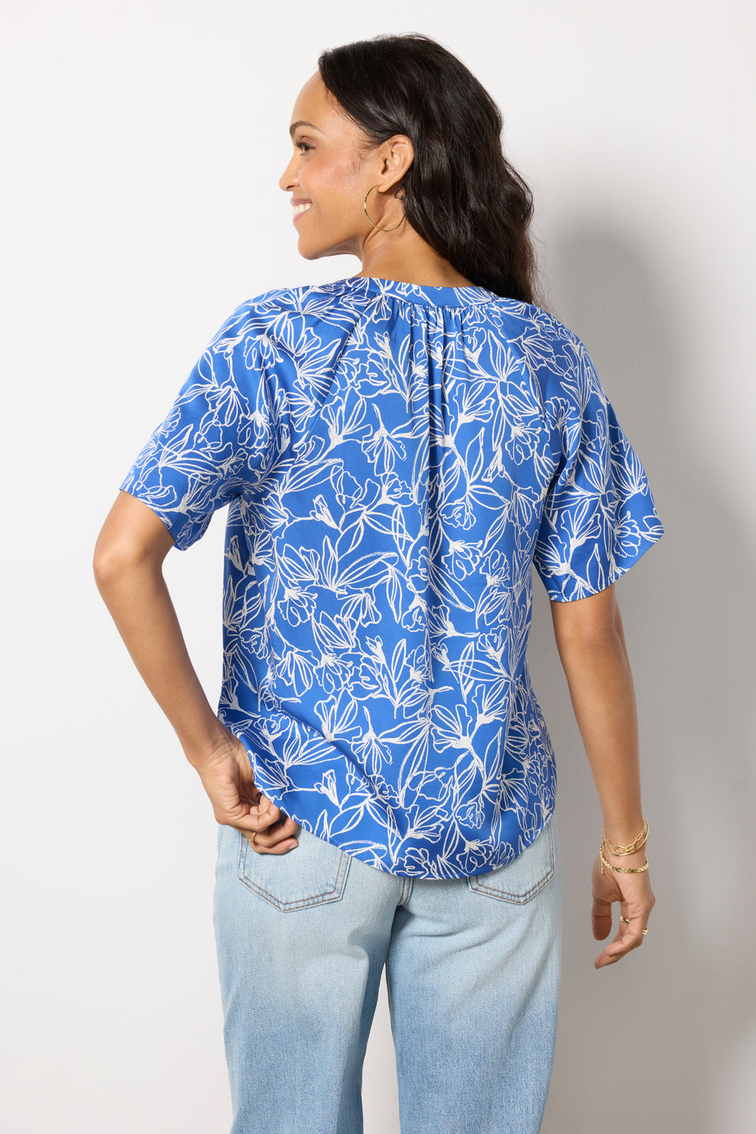 Elevate your spring-to-summer look with the Rylee top by EVEREVE, featuring a split v-neckline, gathered details, and flowy short sleeves.