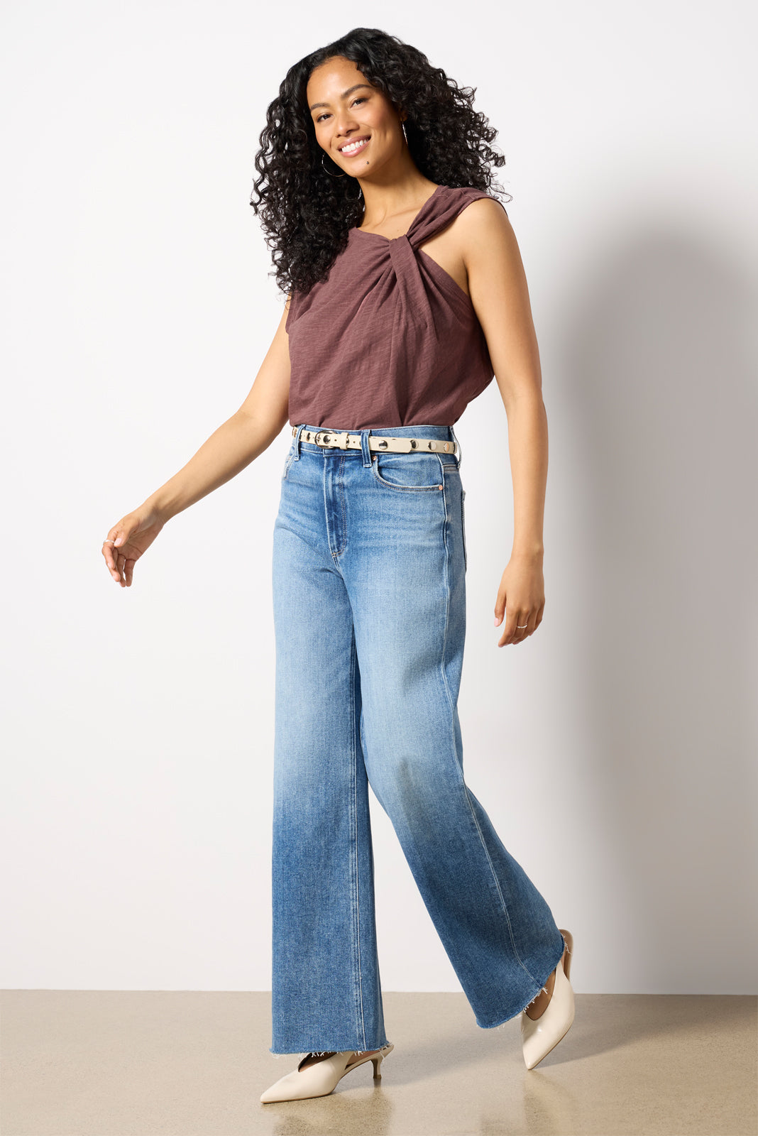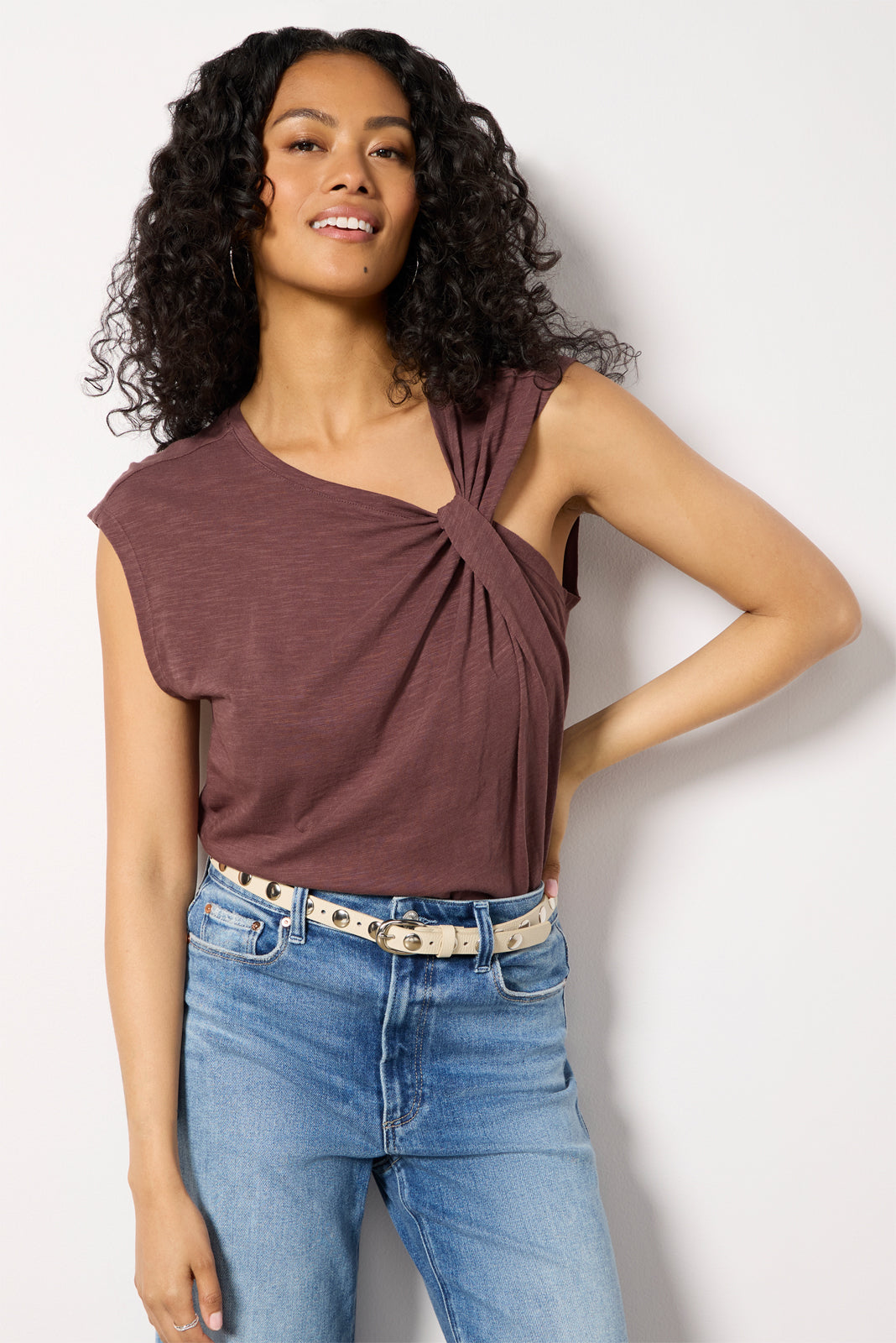A closet staple with a stylish twist, this Sanctuary muscle tee is crafted in soft slub fabric with a knotted shoulder detail—perfect for wearing with any day or night look.