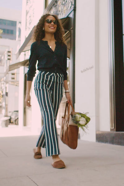 Flattering vertical stripes define these jeans by Kut from the Kloth, featuring a mid-rise waist, a subtle flare-leg silhouette, and ankle-length hems.