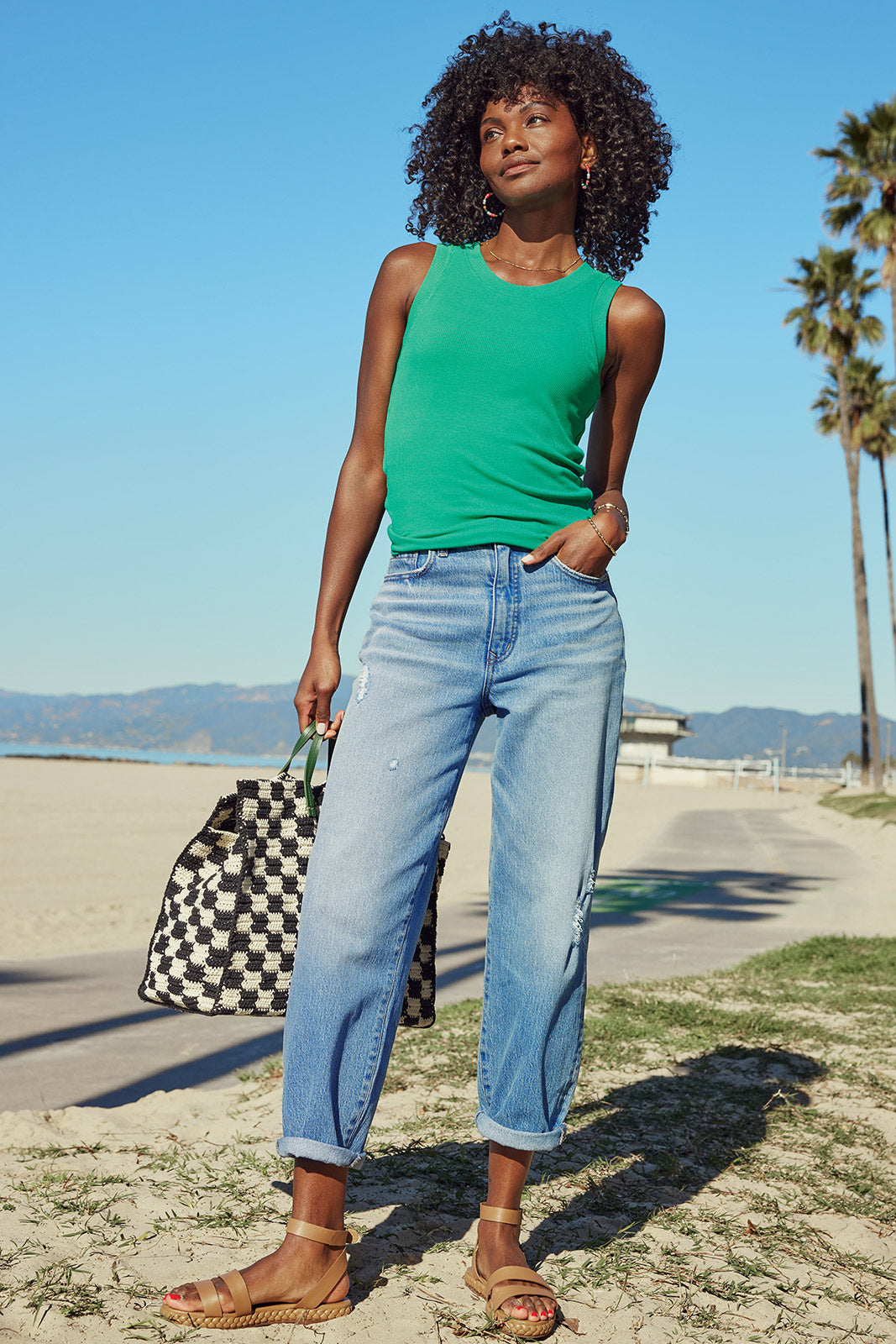 Perfect for your work-to-weekend essentials, this chic checkered tote by Clare V. is crafted in textured cotton crochet and features an open-top design with a roomy, unlined interior. Carry with the green leather handles, or go hands-free with the detachable shoulder strap.