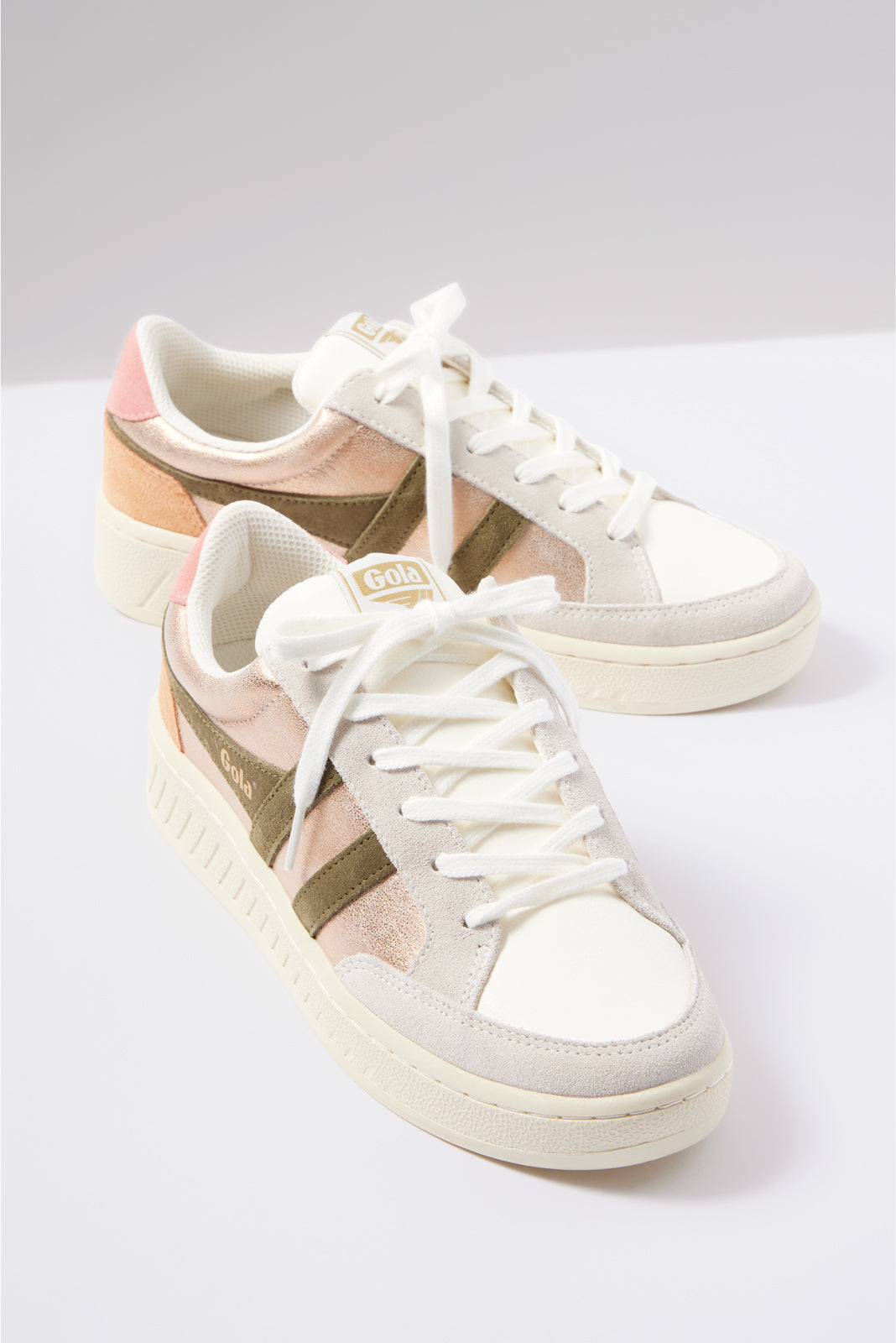 Hit your stride in these statement-making sneakers by Gola, featuring a rose-gold metallic upper and suede details. Pair these chic low-tops with everything from jeans to a midi dress.
