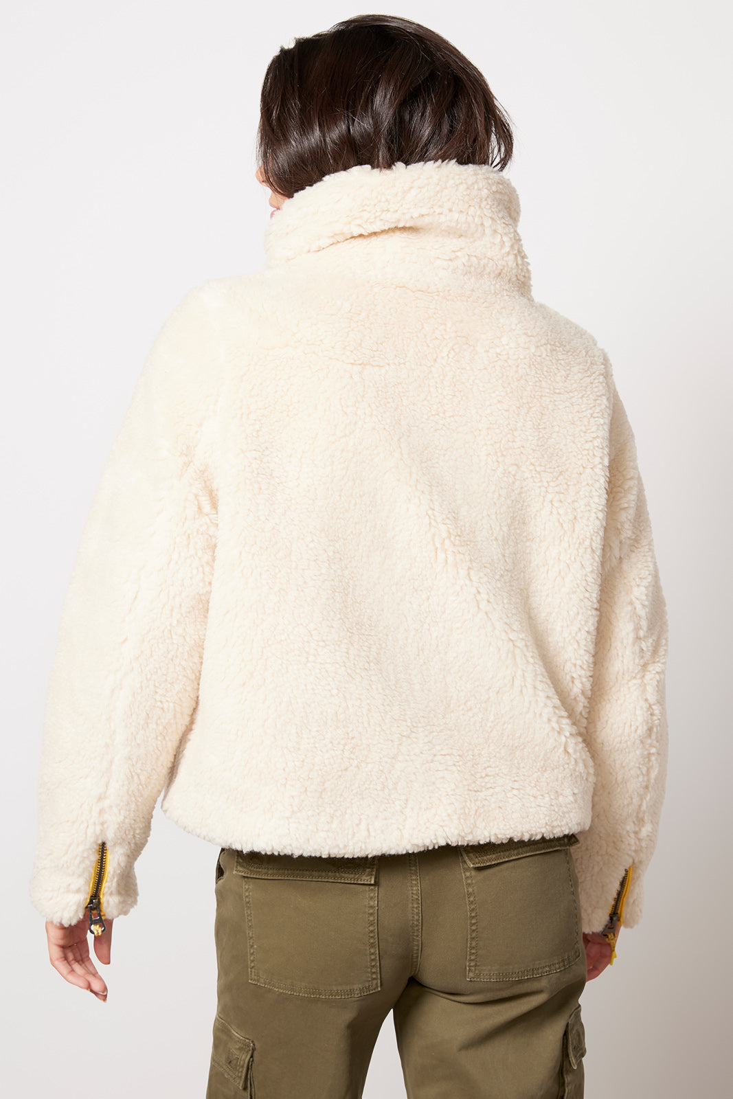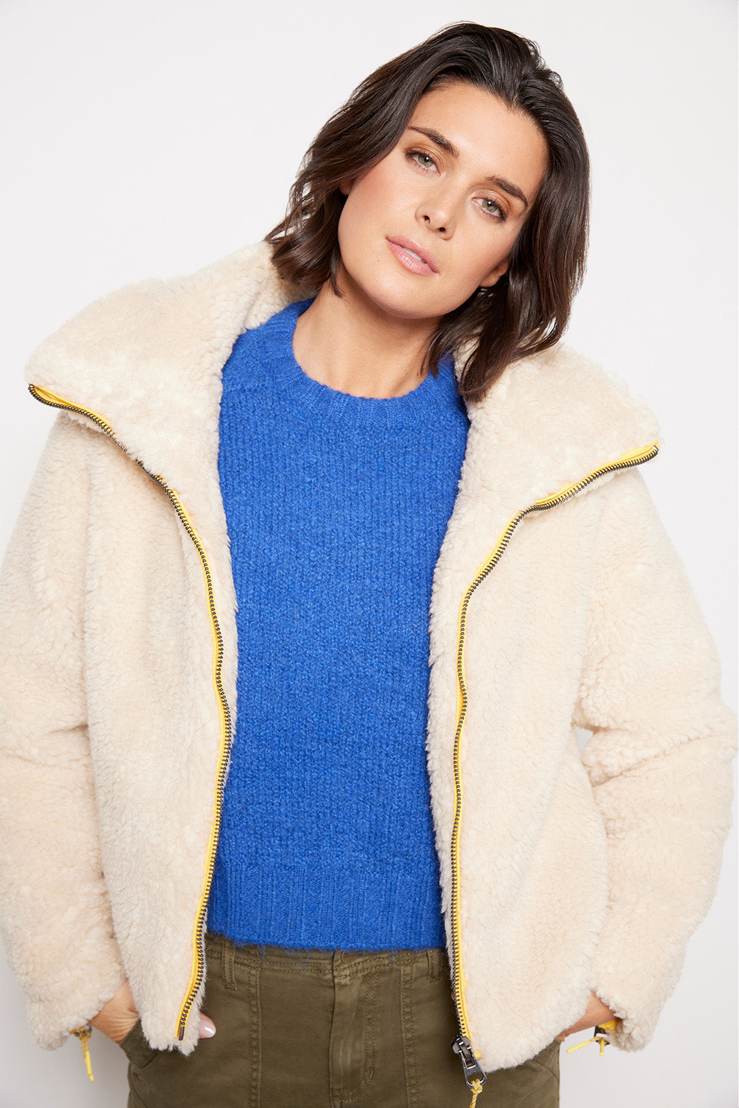 The ultimate cozy-chic layer, this zip-up jacket by Apparis is crafted in plush faux shearling and features a relaxed silhouette with a stand collar, multicolor print lining, and zippered cuffs. You'll be wearing it all season long with tees, turtlenecks, and sweaters.