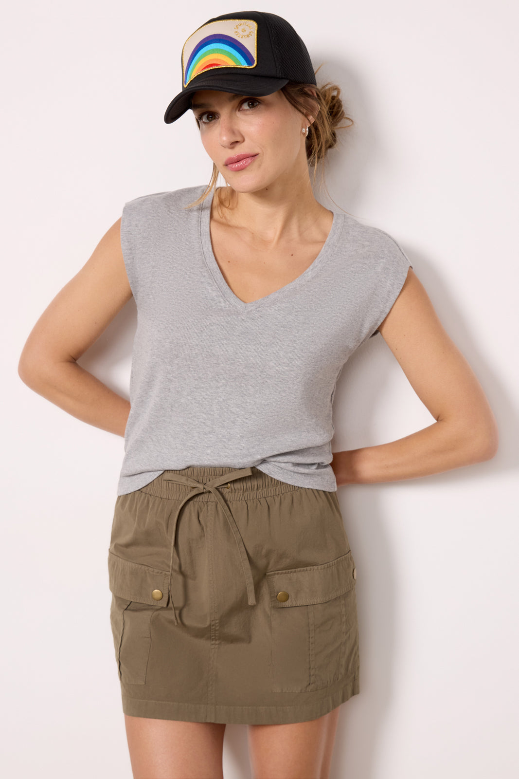A strong shoulder design takes this Michael Stars tee up a notch, crafted in soft rib knit fabric with a v-neckline and semi-relaxed fit. Paired with skirts, jeans, or shorts, it will be your new favorite staple.
