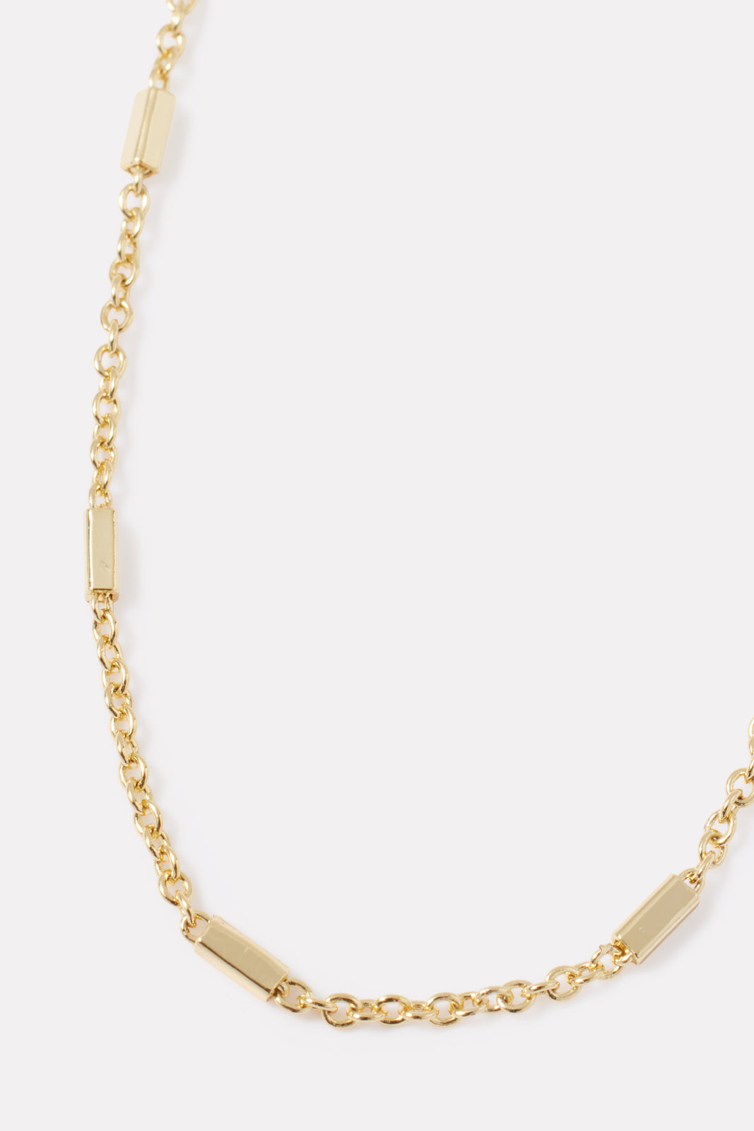 A delicate link bar design defines this chic Gorjana necklace featuring a hinge closure and 18k gold plated finish. Add it to a layered look with a beaded necklace, or complete the set with the matching Tatum Bracelet and Tatum Chain Huggie.