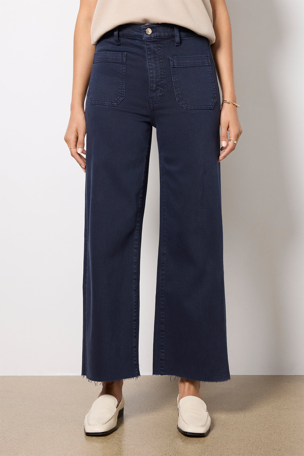 Topped with front patch pockets, the Anchor wide leg jeans by FRAME feature a flattering high-rise silhouette, raw hems, and comfortable stretch denim fabric for day-to-night wear.
