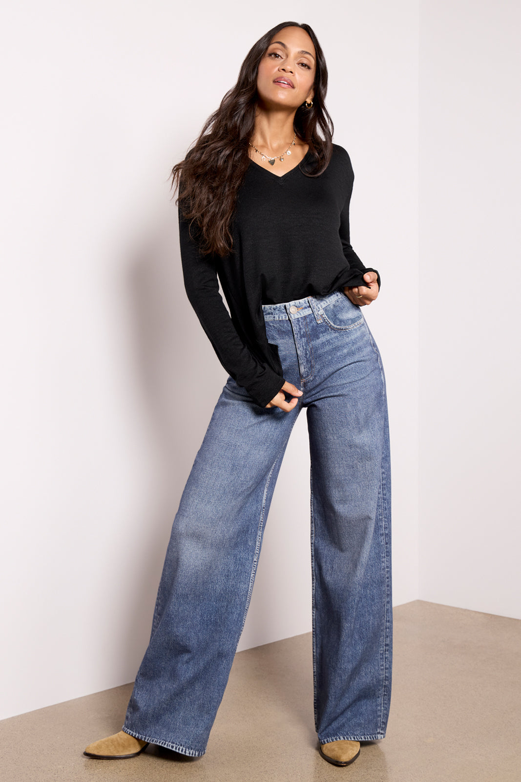 A modern, relaxed fit makes this long sleeved tee by rag & bone perfect for everyday wear. This easy top features a v-neckline and a straight hem with side slits.