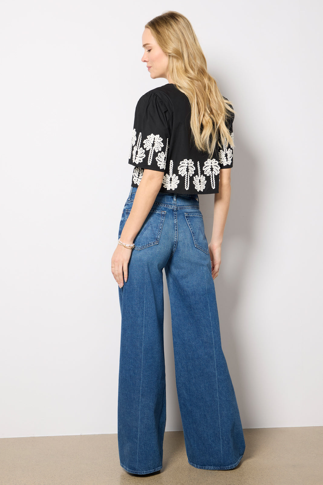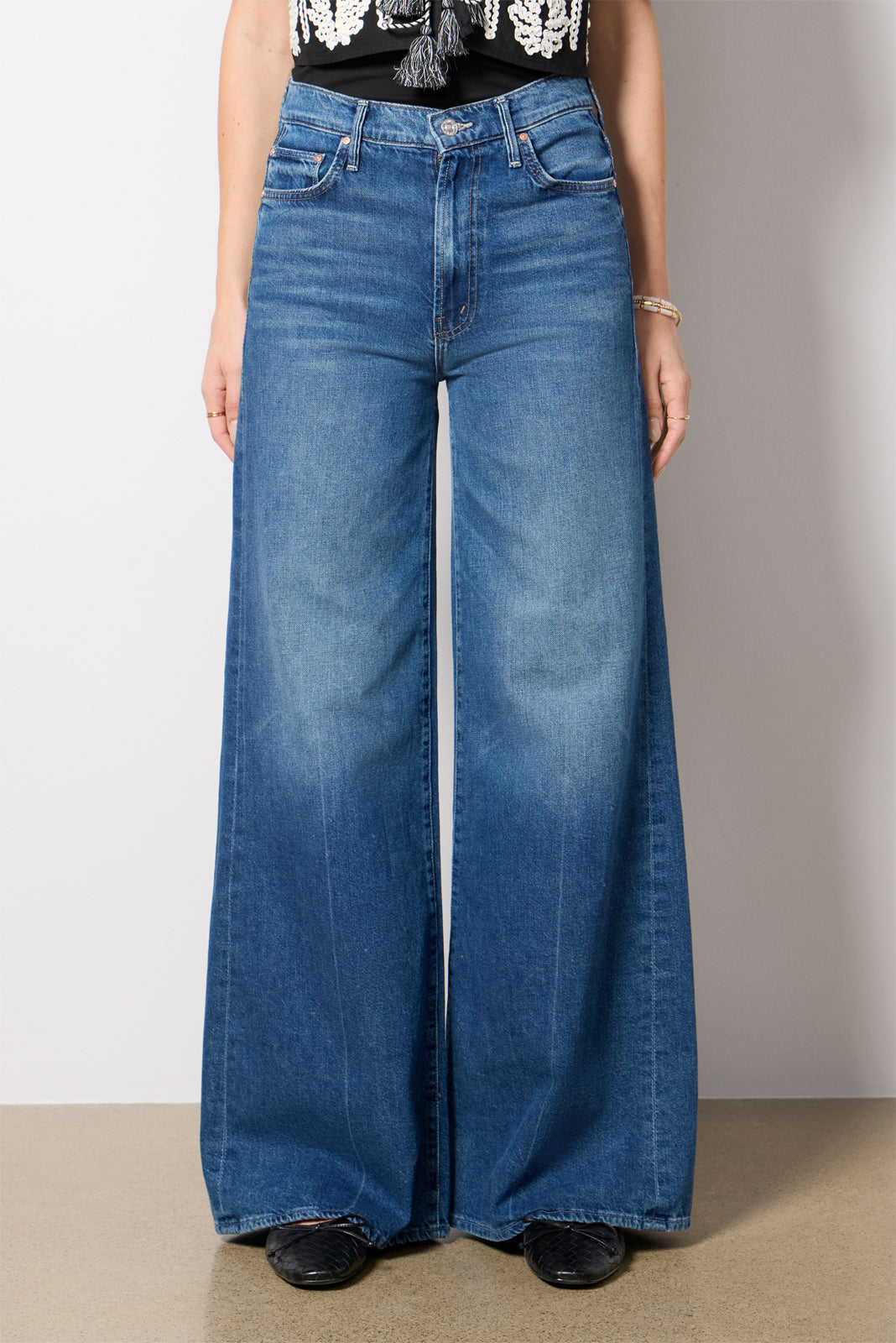 Update your denim collection with The Undercover Sneak wide leg jean by MOTHER, crafted in rigid cotton with a high-rise waist, faded blue wash, and full-length clean hems.
